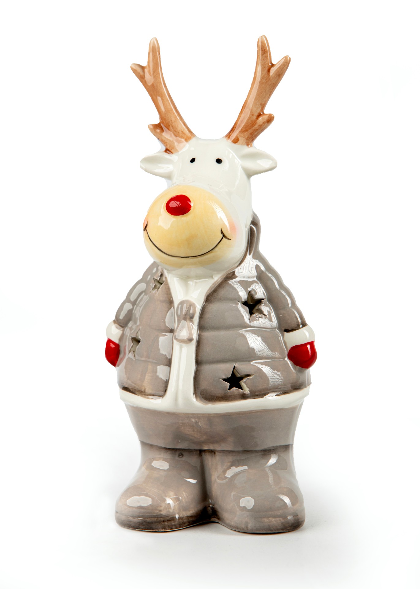 Manamo Deer With Jacket Figurine Ceramic Gray/White 10.7x10x23.1 cm
