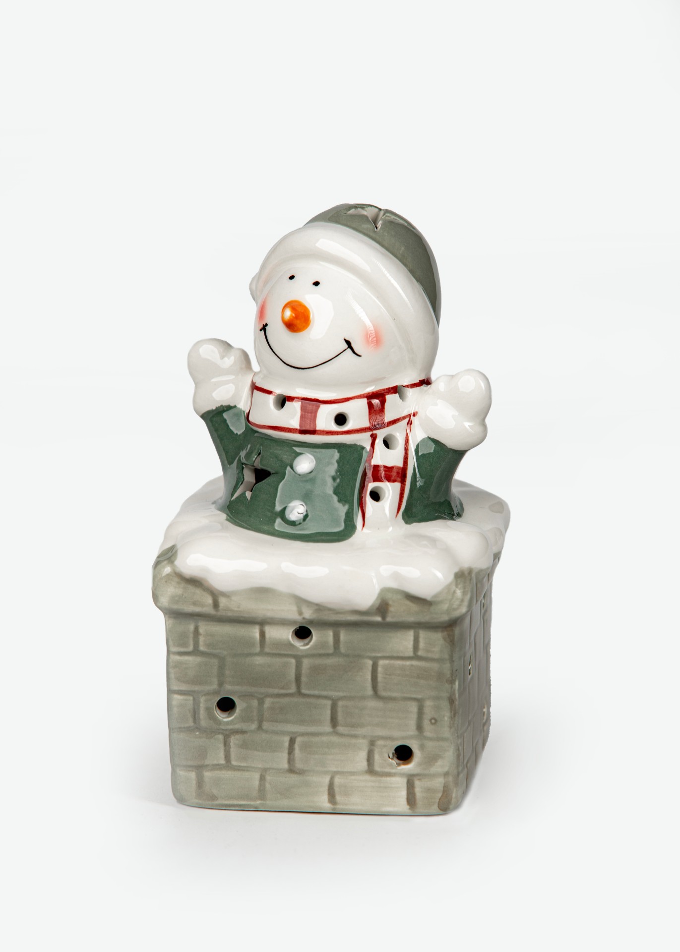 Manamo Surprise Snowman Candle Holder Ceramic Cameo Green/White 8.6x8.6x13.6 cm