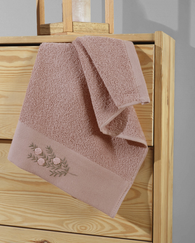Manamo Tiny Rose Embroidered Hand Towel Cotton Blush 30x50 cm