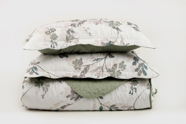 Manamo Carrie საწოლის გადასაფარებელი პოლიესტერის კრემისფერი/მწვანე ორ საწოლიანი 40x250+50x70 სმ (2ც)