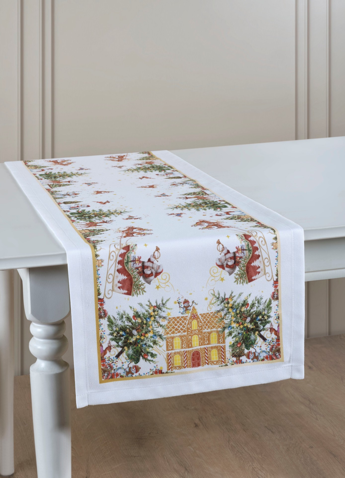 Manamo Christmas Spirit რანერი პოლიესტერის კრემისფერი/წითელი დიჯითალ პრინტით 40x140 სმ