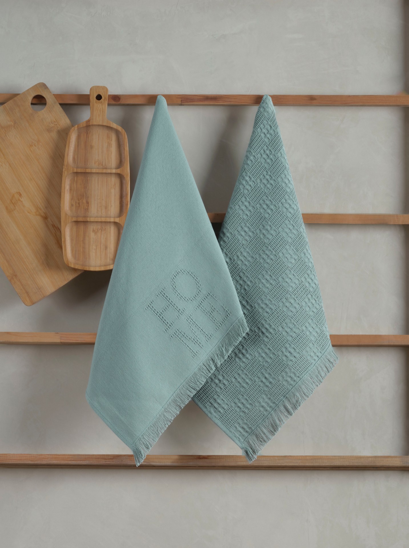 Manamo Home სამზარეულოს პირსახოცი ბამბის ღია მწვანე ჟაკარის 50x70 სმ(2ც)