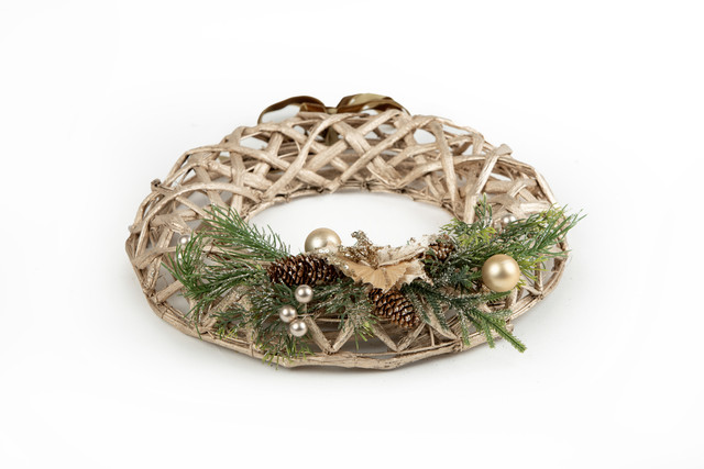 Manamo Strip Bark Door საახალწლო კარის აქსესუარი ოქროსფერი 40x36x8 სმ